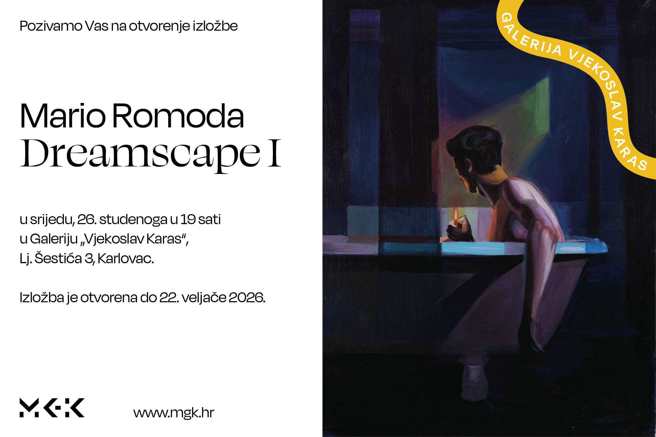 U srijedu, 26. studenoga 2025. godine u 19 sati u Galeriji „Vjekoslav Karas“ u Karlovcu otvara se izložba Marija Romode: Dreamscape I.