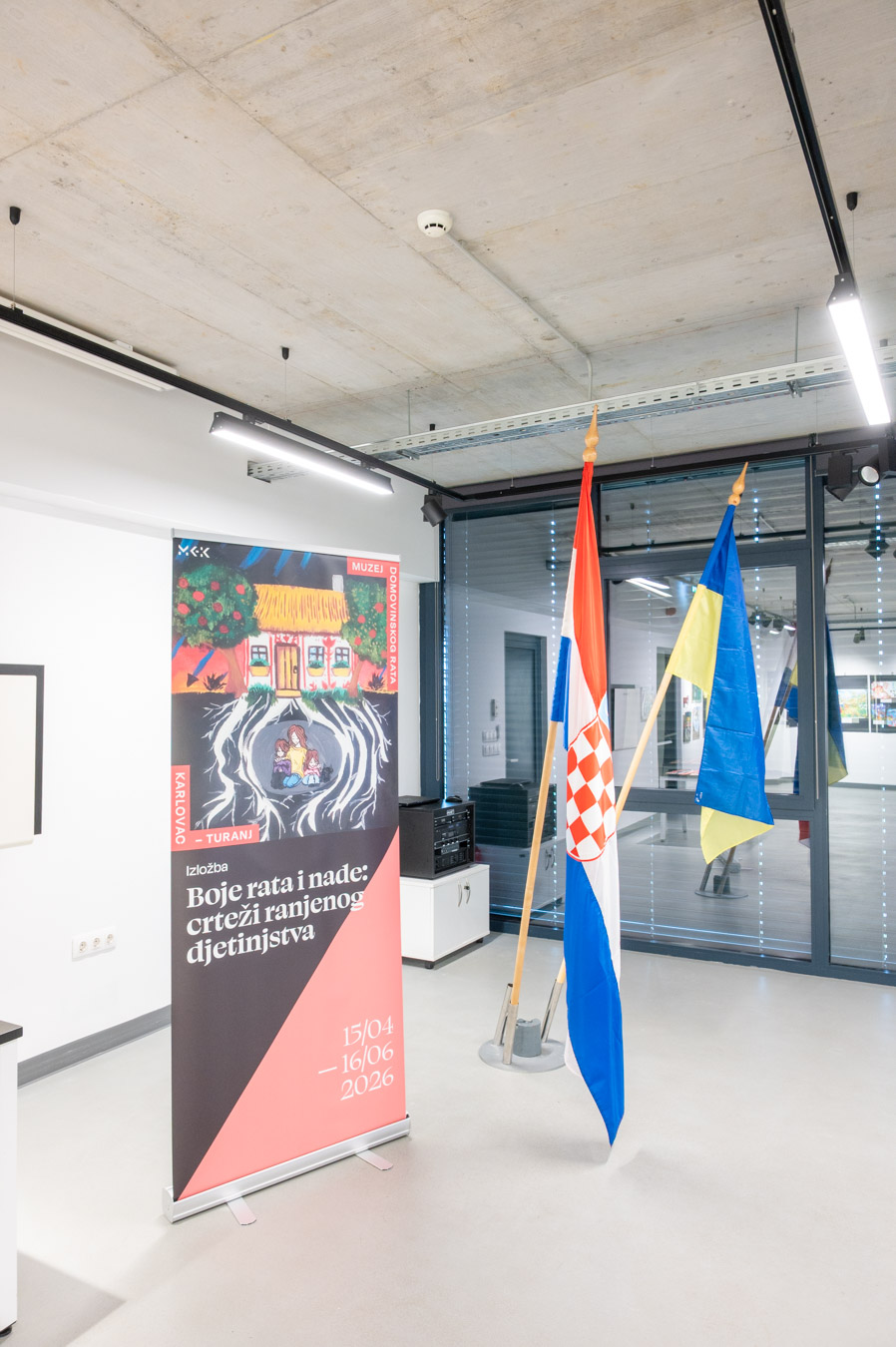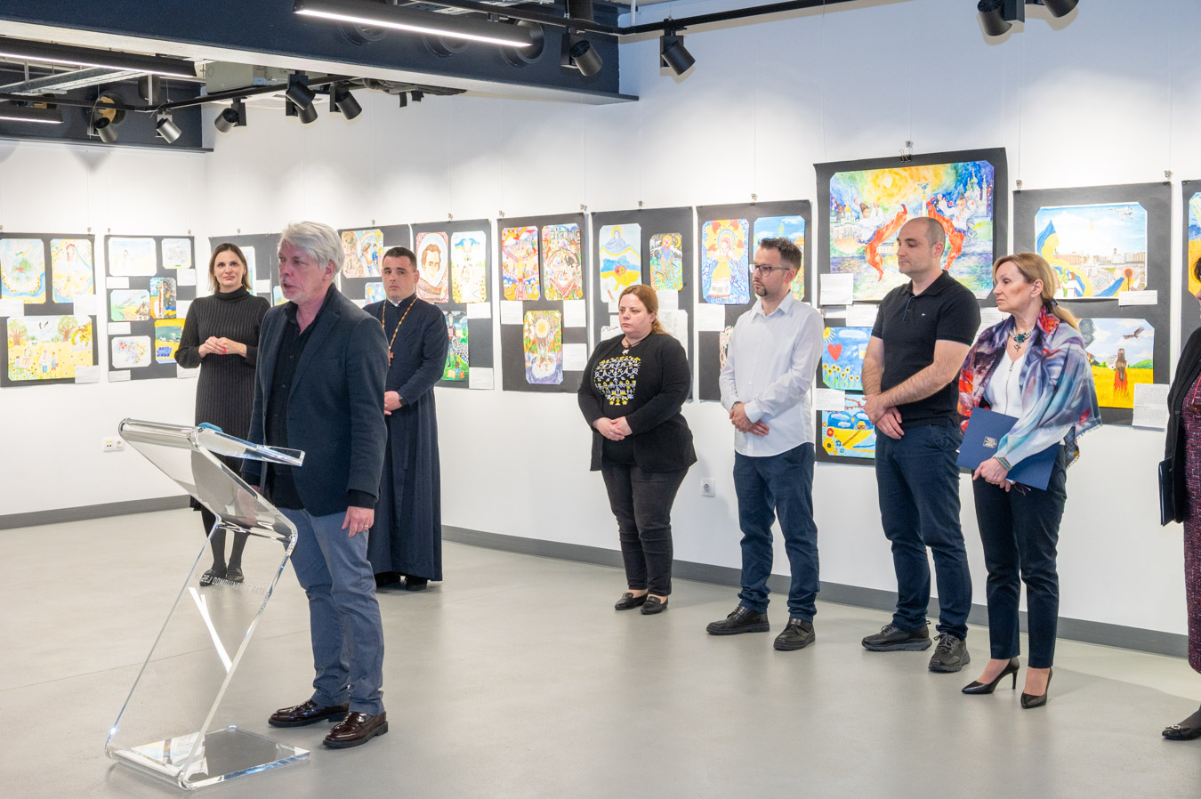 Izložba prikazuje dječje crteže nastale u blizini ratnih područja, a rezultat je međunarodne suradnje i podrške institucija iz Hrvatske i Ukrajine.