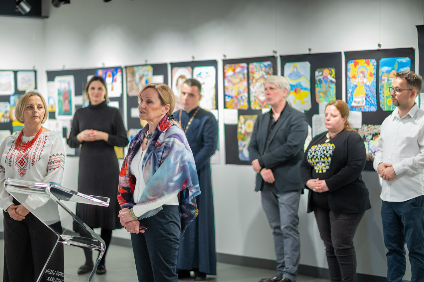 Autorica izložbe je Liudmyla Sydorenko, a svečanom otvorenju prisustvovali su: Anita Milas-Anzić, izaslanica potpredsjednika Vlade i ministra hrvatskih branitelja te ravnateljica Uprave za savjetodavnu, psihosocijalnu i zdravstvenu pomoć; Nina Kirilić, supruga veleposlanika Ukrajine u Republici Hrvatskoj; Marina Uđbinac Stupljanec, voditeljica Odsjeka za hrvatske branitelje, zdravstvo i socijalnu skrb Karlovačke županije; Draženka Sila Ljubenko, pročelnica Upravnog odjela za društvene djelatnosti Grada Karlovca; te vlč. Miroslav Barnjičko iz Župe sv. Ćirila i Metoda u Zagrebu.